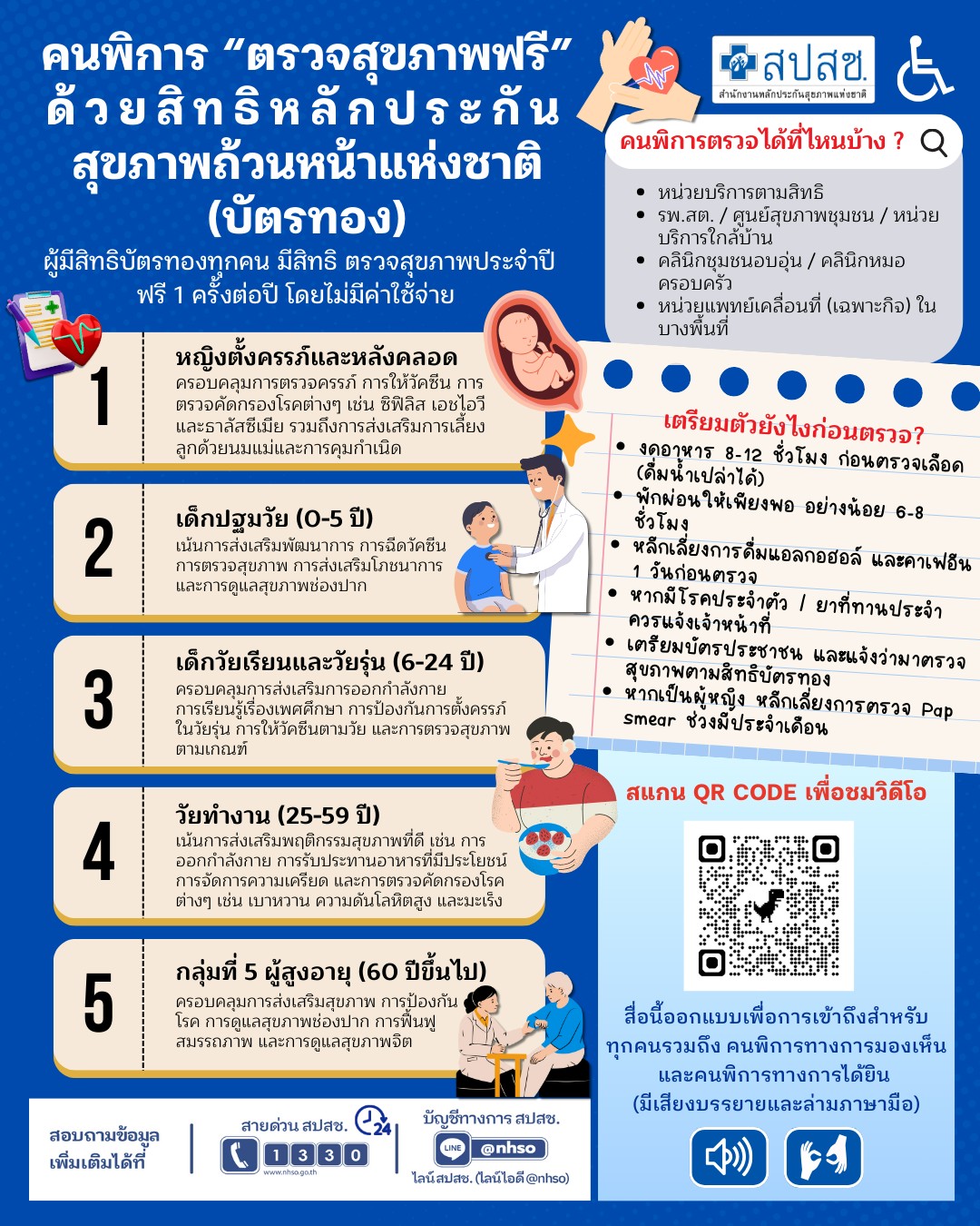 คนพิการ "ตรวจสุขภาพฟรี" ด้วยสิทธิหลักประกันสุขภาพถ้วนหน้าแห่งชาติ (บัตรทอง)