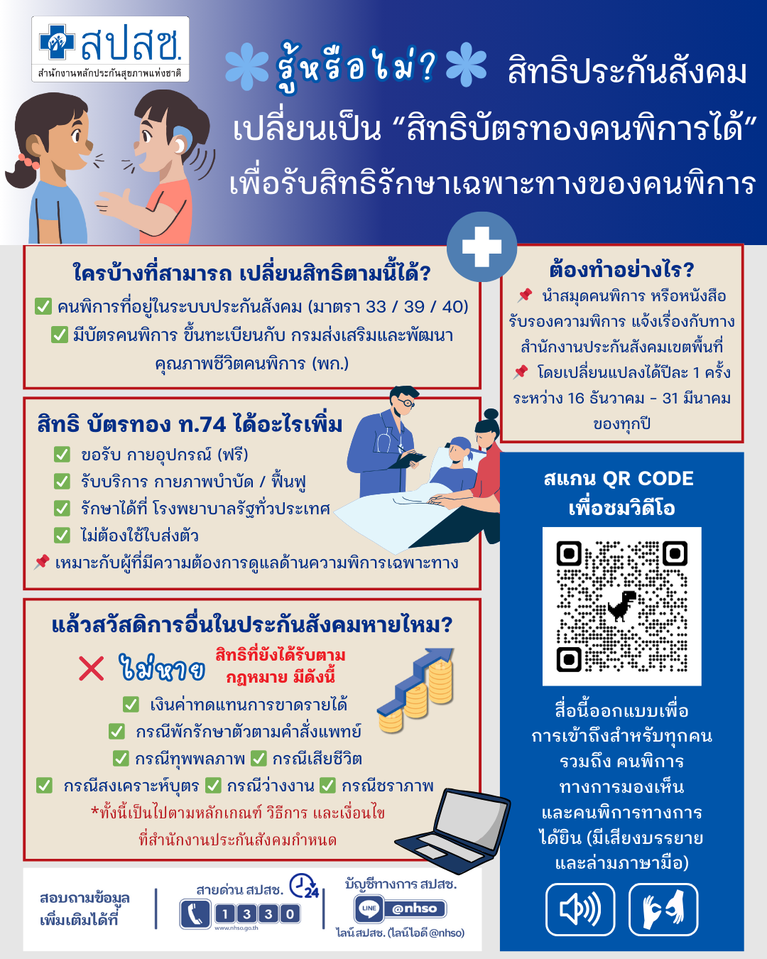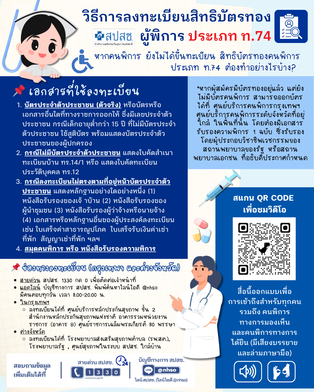 สิทธิหลักประกันสุขภาพแห่งชาติ หรือสิทธิบัตรทอง สำหรับคนพิการ (ท74)